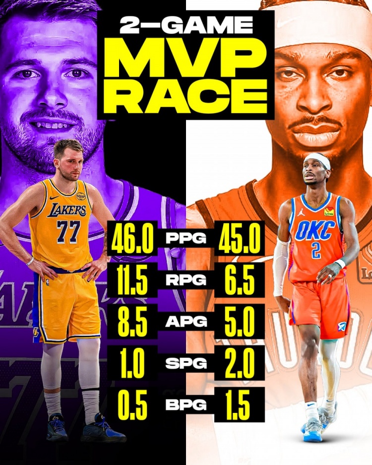 Cuộc thi MVP bắt đầu? Truyền thông Mỹ đăng hình ảnh so sánh số liệu Doncic và SGA: 46+11+8VS45+6+5