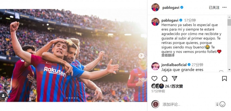 Alba đã thông báo rằng anh ấy sẽ nghỉ hưu vào cuối mùa giải này và tiền vệ Garvey của Barcelona đã đăng một lời tri ân trên mạng xã hội.